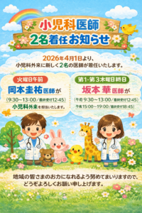 2026年4月1日より小児科医師が新たに2名着任し、