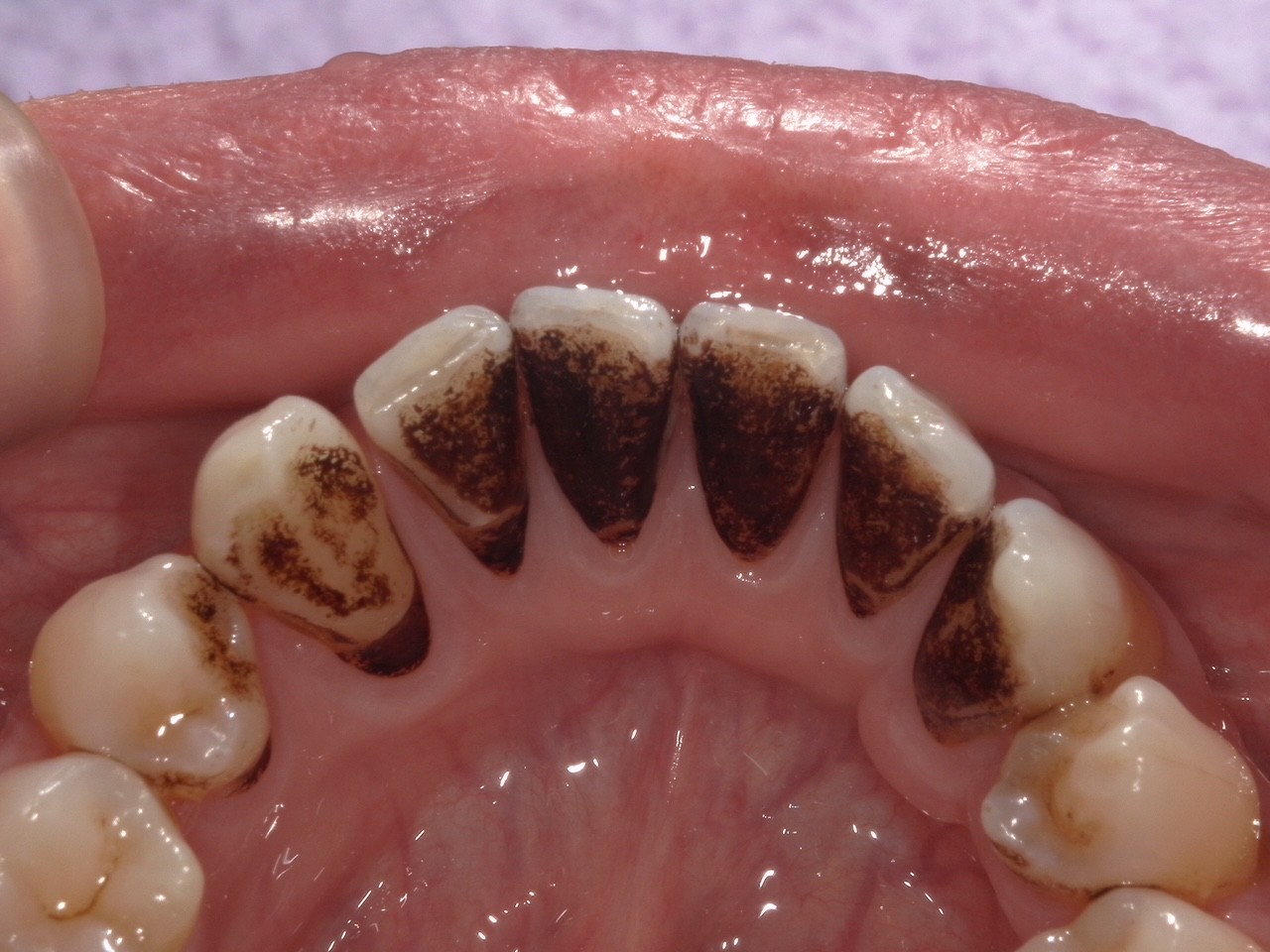 コーヒー、紅茶、赤ワイン、タバコなどによるステイン(着色汚れ)を落とし、歯本来の色に近づける