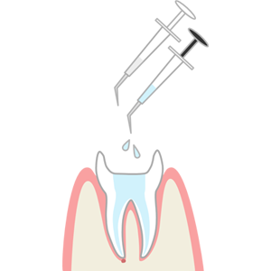 歯髄を除去した後、根管内を専用の洗浄器具と薬剤で何度も洗い清潔にします。