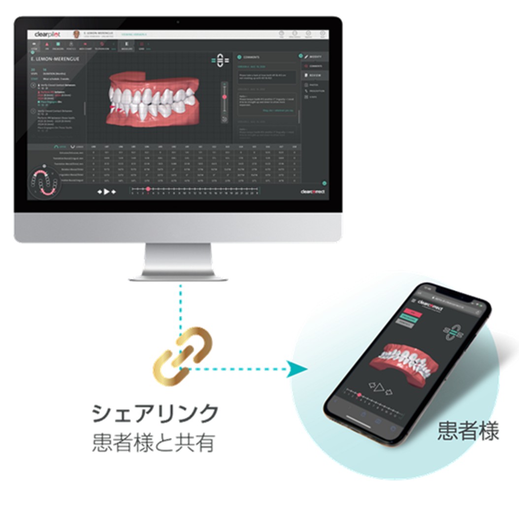 従来の印象材による型どりが不要です。スキャンによる型どりなので、通常の歯の型取りが苦手な方も安心です。 - 3Dシミュレーションで治療後のイメージが可能